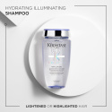 Den lette sjampoen fra Kérastase er tilsatt hyaluronsyre og er spesialtilpasset bleket, grått og stipet blondt hår. Denne skånsomt rensende formelen gjør håret glatt og glansfullt fra rot til tupp, gir håret en lett følelse og gjør de blonde tonene klarere. Den renser håret for forurensende stoffer som kan gjøre at håret virker livløst. Formelen er beriket med en effektiv kombinasjon av hyaluronsyre og edelweiss,blomst, og har en høy konsentrasjon av antioksidanter som hindrer at håret brekker og beskytter fibrene. Hyaluronsyre fukter blondt hår og gjør hvert hårstrå glattere. Håret gjøres klart for pleie med en strålende glans