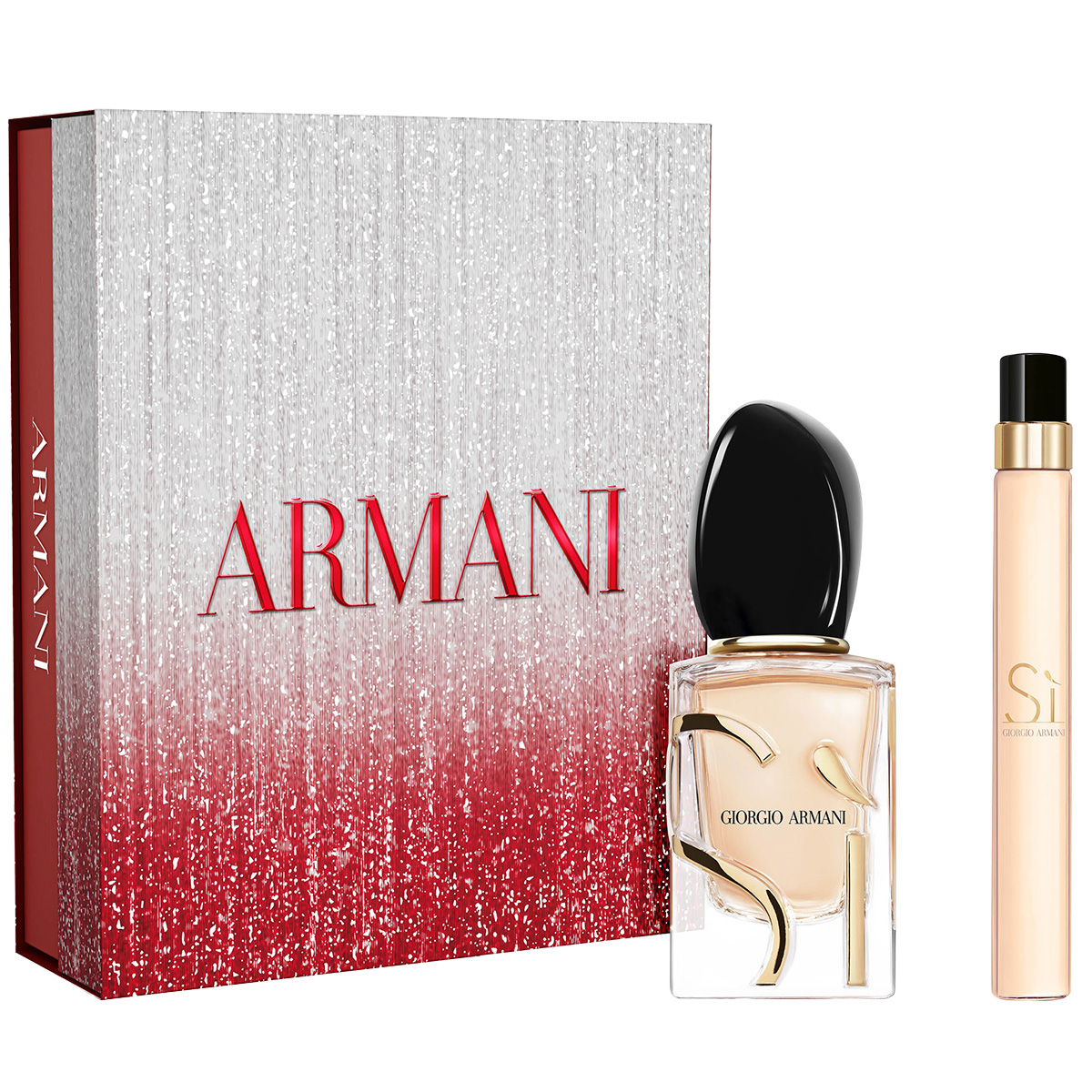 Den verdifulle flasken er designet for å vare, er påfyllbar og resirkulerbar. Dette Sì Eau de Parfum gavesettet for kvinner består av en 30ml duft og en 10ml duft.