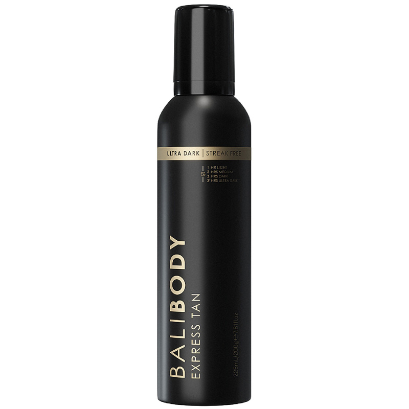 - Få en dyp og ultramørk solbrun farge med Bali Bodys express mousse. Den luftige og lett påførbare moussen smelter inn i huden og tørker raskt for et jevnt og stripefritt resultat. Perfekt for deg som ønsker intens men naturlig glød på kort tid. Formelen inneholder 100 prosent Ecocert sertifisert DHA og pleiende oljer som fukter og mykgjør huden.NYRAD