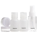 - Et komplett reisekit som inneholder reiseflasker som kan fylles på med favorittproduktene dine; to små krukker (15 ml), to flasker (50 ml) og en sprayflaske (50 ml). Klistremerker følger med for merking med produktnavn.