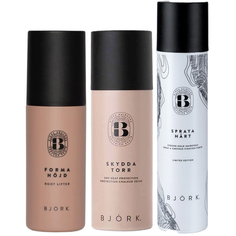 2. Volymmousse - Björk Form Höjd Volume Mousse ( 200 ml)Volumgivende spraymousse som gir fylde uten å etterlate en klebrig eller knasende følelse. Vektløs og varmebeskyttende formel med nærende rose-, blåbær- og B-vitaminekstrakter som gir fylde, volum og naturlig glans. Kan påføres direkte på røttene eller i flere lag for å gi vektløst volum og fylde.