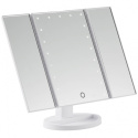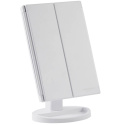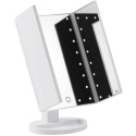 Dette sammenleggbare speilet består av tre speil som gir en perfekt panoramaoversikt over ansiktet ditt. 21 myke og justerbare LED-lys gir perfekt refleksjon av farger og optimalt lys for å sminke eller nappe bryn. Lysstyrken kan justeres i henhold til din egen smak basert på lyset som kreves for hver anledning - gjøres ved å trykke på en knapp på speilskjermen. Trykk på berøringsknappen for å slå av / på lyset og hold knappen inne i minst to sekunder for å justere lyset. Speilet kan enkelt justeres for å gi en oversikt fra best mulig vinkel. Dette speilet har tre brettespeil som gir deg flere forskjellige vinkler og en tredimensjonal opplevelse, mens den justerbare speilbunnen gjør det mulig å plassere speilet på flate overflater, slik at du enkelt kan jobbe med begge hender. Lampene drives av en USB-kabel (inkludert) eller 4 AAA-batterier (ikke inkludert). Batteriene blir ikke brukt når speilet er koblet til via USB.