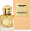 Burberry Goddess Eau de Parfum Intense-kampanjen fortsetter å følge Emma Mackey og løvinnnens stolthet på reisen til selvoppdagelse. Med fornyet styrke og selvtillit legemliggjør Emma ånden til Burberry Goddess. Når solen går ned, henter hun styrke fra strålene og frigjør kraften inni seg. Denne Burberry-duften er en gourmand aromatisk treaktig duft. Signaturtrioen av vaniljer fra gudinnen Eau de Parfum er forsterket med et fjerde vaniljetre (vanilje SFE), som har en røykaktig karakter. Når den kombineres med lysende lavendelessens, intensiverer den duften med en livlig treaktig duft. Burberry Goddess Eau de Parfum Intense er inspirert av solnedgangens farger, og den er plassert i en firkantet flaske fylt med en lett ravfarget duft og dekorert med en gyllen medaljong. Mørk beige emballasje med en gabardin-inspirert gulletikett refererer til merkevarens arv. Burberry Goddess Eau de Parfum Intense er designet for å kunne refilles. Refill selges separat.