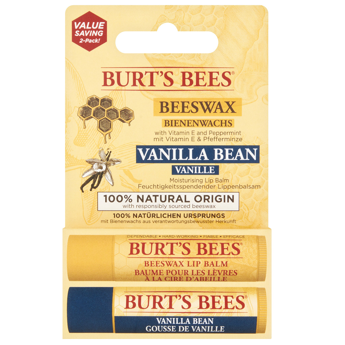 Et duosett med de populære smakene av Burt's Bees' nærende og naturlige leppepomade. Den klassiske Beeswax Peppermint og Vanilla Bean.