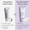 Caudalie Vinotherapist™ Hånd- og neglekrem med druekjerneolje, økologisk sheasmør og polyfenoler nærer og reparerer tørre hender uten å få dem til å føles klissete. Samtidig beskytter den mot dehydrering og ytre stressfaktorer. Den er beriket med avokado-olje og olivenolje for ekstra næring og komfort, gjør huden mykere, motvirker stramhet og styrker negler og neglebånd. Vegansk formel med 98 % ingredienser av naturlig opprinnelse.