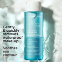 Instant Eye Make-Up Remover er en to-fase sminkefjerner som skånsomt fjerner vannfast øyesminke. Sminkefjerneren passer for de som bruker tung eller vannfast sminke og ønsker en effektiv rengjøring, samtidig som øyepartiet pleies. Formelen er rik på organisk søtgul/ gentiana-ekstrakt, dyrket i hjertet av Domaine Clarins, samt organisk kornblomst-ekstrakt for å berolige huden rundt øynene. Inneholder også panthenol som bidrar til å beskytte øyevippene. Nytt design med en enda mer miljøvennlig flaske.