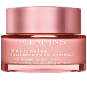 Multi-Active Day All Skin Types er en jevnende, glødforsterkende og anti-aging dagkrem som passer alle hudtyper. Formelen inneholder en innovativ teknologi – med niacinamid og havtornekstrakt – som reduserer de første aldringstegnene, styrker funksjonen til hudbarrieren og bevarer hudens ungdommelige utseende. Huden blir fuktet, får økt glans og fornyet energi, samtidig som hudteksturen forbedres. Inneholder 91% ingredienser av naturlig opprinnelse. Når huden utsettes for en intens hverdag og livsstil, trenger den å opprettholde energien og spensten sin – noe Clarins Multi-Active Day All Skin Types bidrar med, takket være sin unike sammensetning av ingredienser: Skin Charger Complex inneholder niacinamid og havtornekstrakt, en virkningsfull duo som bidrar til å redusere selv de første tegn på aldring. Tistelekstrakt har revitaliserende egenskaper som gir huden ny energi. Jordbær tre-ekstrakt bidrar til å forbedre hudtekstur og redusere synlige porer. Inneholder også Clarins Anti-Pollution Complex. 93 %* av kvinnene opplevde jevnere hud.