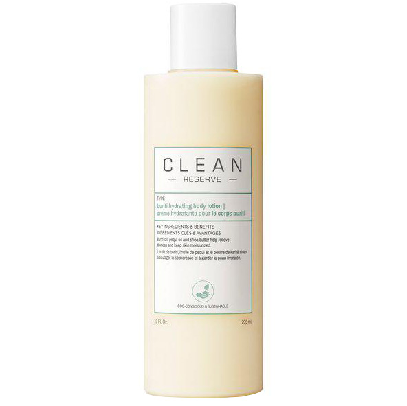 - CLEAN RESERVE Buriti Hydration Body Lotion er en lett og raskt absorbert bodylotion som bidrar til å gi huden en dypt hydrert, myk og beroliget følelse. Formelen bidrar også til å motvirke tørrhet, samt å opprettholde hydrert hud. En blanding av eteriske oljer gir en lett og oppkvikkende sitrusduft. Formelen er skånsom og passer for alle hudtyper, også sensitiv hud. Vegansk. Vitaminrik buriti, pequi og jojobafrøoljer, samt sheasmør, motvirker tørrhet og fukter huden. Druefrøolje bidrar til å øke hudens smidighet. Beroligende aloe bidrar til å motvirke rødhet og følsomhet i huden.