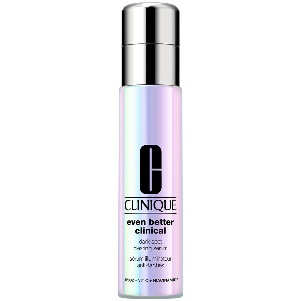 Even Better ClinicalTM Dark Spot Clearing Serum er et lysnende serum som bekjemper mørke flekker og ujevn hudtone. Serumet reduserer mørke flekker, inkludert merker etter urenheter, samtidig som gløden forbedres. Even Better ClinicalTM Dark Spot Clearing Serum er den fjerde generasjonen av dette lysnende serumet, en kraftig dermatologisk løsning for hyperpigmentering. Den avanserte formelen, som inkluderer Cliniques patenterte molekyl UP302, balanserer mer potente lysnende ingredienser med mer beroligende ingredienser. Konsistensen er lett, og den oljefrie formelen absorberes raskt inn i huden.