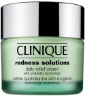 - Redness Solutions Daily Relief Face Cream er en beroligende ansiktskrem som passer for alle hudtyper som sliter med sporadisk eller vedvarende rødhet. Den roer umiddelbart ned huden og reduserer rødhet - også ved rosacea. Over tid forbedres hudens komfort, og synligheten av burstede blodkar reduseres. Formelen er beriket med Cliniques patenterade lactobacillus-ekstrakt, som hjelper til med å styrke hudbarrieren for å redusere irritasjon.