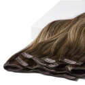 Nytt og forbedret! Tilbakemeldingene fra kundene våre er viktige for oss. Derfor har vi lyttet, samlet inn ønskene deres og oppdatert de fantastiske Clip-on-settene våre for å ta dem til neste nivå. De er nå enda fyldigere og finnes i flere lengder og farger, slik at du enkelt kan finne det som passer for deg! Clip-on-sett, 7 deler. Med et Clip-on-sett kan du raskt og enkelt få det drømmehåret og den frisyren du ønsker deg. Et Clip-on-sett er en midlertidig hårforlengelsesmetode som du enkelt kan sette inn og ta ut selv. Vask Clip-on-settet før første gangs bruk, og klikk det deretter fast i håret. Velg selv om du vil style det før eller etter innsetting.Komplett løshårsett Laget av ekte hårFestes enkelt til ditt eget hår ved å åpne og lukke klipsenePlatt, krøll og style Clip-on-settet akkurat som du vil 30 cm: 80 gram hår (totalvekt: 90 gram)40 cm: 100 gram hår (totalvekt: 110 gram)50 cm: 110 gram hår (totalvekt: 120 gram)60 cm: 120 gram hår (totalvekt: 130 gram)70 cm: 130 gram hår (totalvekt: 140 gram)Dette inkluderer80-130 gram fordelt på syv ferdige deler. Klippene er festet til håret. Delene er spesialdesignet for å gi deg mulighet til å variere og tilpasse frisyren din.ProduktdetaljerDitt clip-on-sett inneholder løkker i ulike bredder: 1 x 20 cm (4 stk.), 2 x 15 cm (3 stk.), 2 x 10 cm (2 stk.), 2 x 5 cm (1 stk.).AnnetNormalt trenger du én pakke til en hel hårforlengelse. Hvis du har veldig tykt hår eller ønsker å lage en veldig stor frisyre, kan det hende du trenger to pakker.