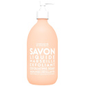Exfoliating Liquid Marseille Soap gir en skånsom eksfoliering av kropp og hender takket være de finmalte olivenfrøene fra Middelhavet. Dette er en såpe som bryter ny mark samtidig som den er tro mot velprøvde teknikker. Den er laget av botaniske oljer i en kjele etter en tradisjonell metode med 98 % naturlige ingredienser. Den solfylte og glade duften er et pust av optimisme og etterlater en delikat duft på huden med sprudlende sitrusnoter. De resirkulerte eksfolieringskornene er laget av olivenkjerner som brukes til utvinning av olivenolje, og bidrar dermed til gjenvinning av olivenavfall. Resultat: Regelmessig bruk gir huden mykhet, komfort og glød.
