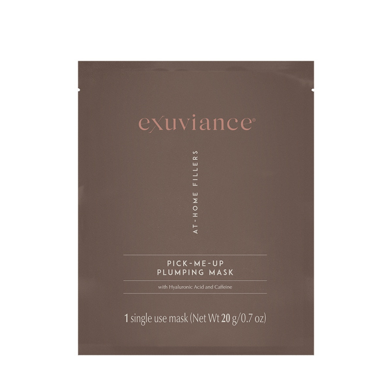 Pick-Me-Up Plumping Mask er beriket med hyaluronsyre som fyller opp hudens fuktreserver og bidrar til å jevne ut fine tørrhetslinjer, samt koffein som gir en oppkvikkende følelse og kan bidra til å dempe hevelse.