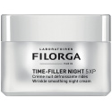 Time-Filler Night 5XP er en utjevnende nattkrem som synlig reduserer forekomsten av fem forskjellige typer rynker: pannerynker, bekymringsrynker, kråkeføtter/latterlinjer, nasolabiale linjer og soverynker (rynker forårsaket av friksjon mot puten). Formelen [tripeptid + hyaluronsyre + utjevnende planteekstrakt] virker om natten for å hydrere, mykgjøre og forbedre hudens elastisitet og tekstur, samtidig som den reduserer forekomsten av fine linjer og rynker. I tillegg forsterkes huden med antioksidanter. Time-Filler Night 5XP har en lett tekstur og passer for alle hudtyper.