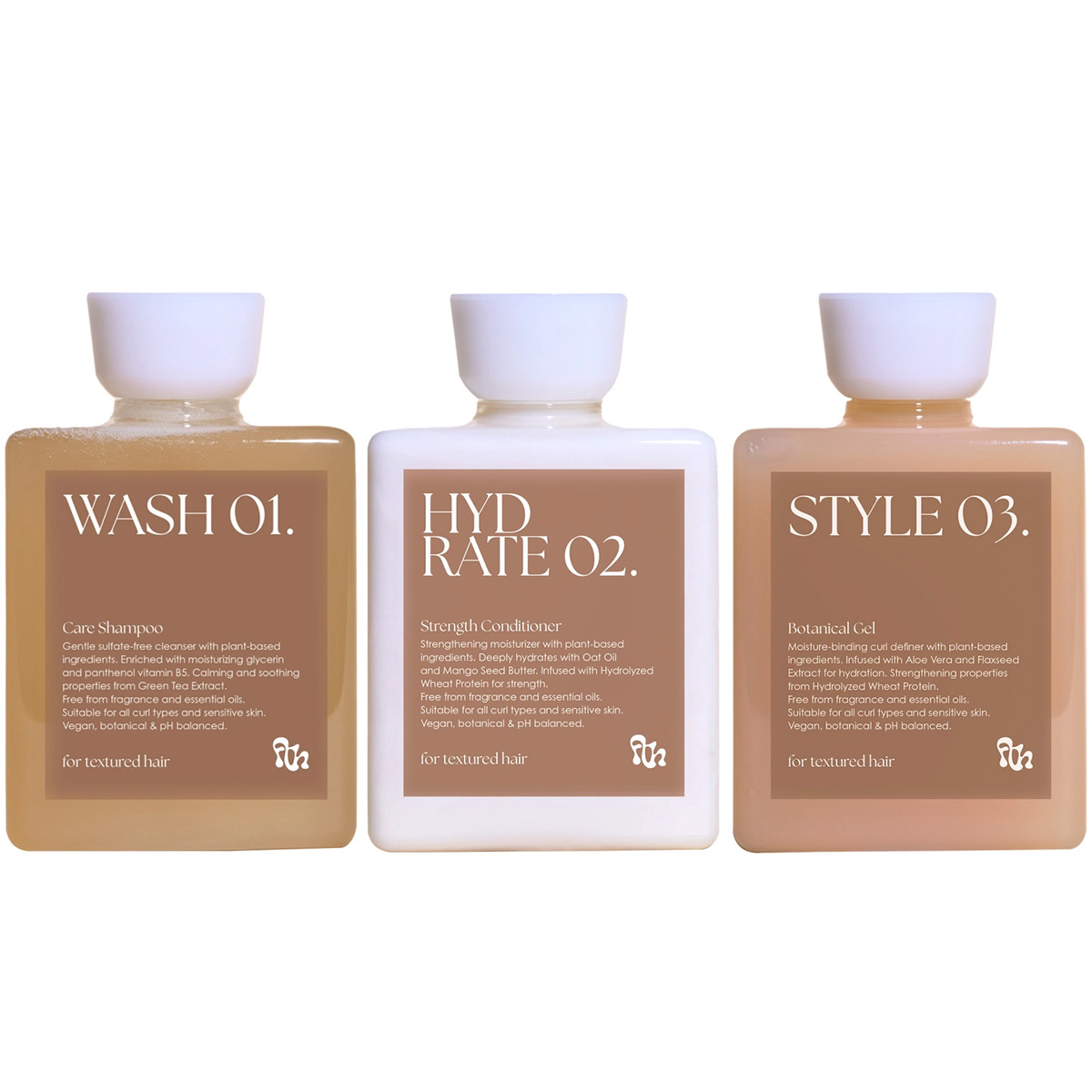 WASH 01 er det første og essensielle trinnet i hårpleie rutinen WASH 01, HYDRATE 02, STYLE 03 for textured hair. Det er en parfymefri og skånsom hårvask som renser og beroliger hodebunnen og teksturert hår. Laget uten sterke kjemikalier og produsert i henhold til EUs kosmetikk forskrifter. Egnet for sensitiv hud. Spesielt utviklet og laget for å ta vare på teksturert hår.