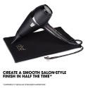 Få vakkert hår på halve tiden* med ghd air® profesjonell hårføner. Den kraftige 2100 W** profesjonelle motoren og det patenterte avtakbare luftfilteret leverer høytrykksluftstrøm for rask tørking, mens avansert ionisk teknologi reduserer krus og flyktig hår for å gi en glatt salongfinish på halve tiden*. Variabel effekt- og temperaturkontroll lar deg skreddersy føningen til din hårtype, mens en kaldluftsknapp bidrar til å låse den ferdige frisyren på plass med en kald luftstrøm. Den ergonomiske utformingen gjør den behagelig å holde for både venstre- og høyrehendte brukere.