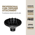 Den ultrafine luftstrømmen og det optimaliserte designet på diffuserens fingre jobber sammen for å tørke og forme krøllene dine skånsomt, og gir dem spenst, volum og tydelig definisjon.