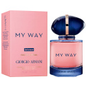 My Way Intense er en invitasjon til en reise med selvoppdagelse, meningsfulle møter og sterke opplevelser. En forsterket blomsterduft på en vanedannende treaktig duft, laget av bærekraftige ingredienser. Duften åpner med lyse noter av appelsinblomst fra Egypt. Et nytt intenst hjerte av tuberose fra India avslører en kremet og fløyelsmyk fasett av blomstersignaturen. I bunnen av duften tar sandeltreet fra Ny-Caledonia en vanedannende kremaktig vending, der det møter en sensuell vanilje fra Madagaskar. Den blå og gullfargede juvellignende korken symboliserer en talisman som innkapsler alle opplevelsene. Intensiteten av disse øyeblikkene fanget i korken er overført til My Way Intense-flasken, der glasset er badet i gjennomsiktige blå refleksjoner. Denne luksuriøse duften kan etterfylles og inneholder bærekraftige ingredienser. Det er talisman som innkapsler alle møtene som betyr noe. I AM WHAT I LIVE. Gi henne en luksuriøs gave med Armani. Denne duften er den perfekte gaven til din kjære.