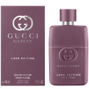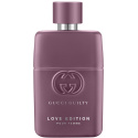Gucci Guilty Love Edition Pour Homme & Pour Femme er to kraftfulle og lidenskapelige dufter skapt for å feire kjærligheten i alle dens former på Valentinsdagen. Duoen visker ut grensene mellom maskulint og feminint ved å tilføre en maskulin signaturnote i dameduften og en feminin signaturnote i herreduften. Gucci Guilty Love Edition Pour Femme åpner med en sensuell, floral friskhet av syrin – en tydelig grønn og frisk note med en elegant, honningsøt fylde. Syrinakkorden har en uimotståelig tiltrekning som får deg til å ønske mer, og leker med de kjølige, jordnære notene av patchouli i hjertet. Den treaktige og fyldige varmen utvikler seg videre til en dyp og omsluttende base av musk og amber. Flasken for henne har en matt, lilla nyanse som representerer den ene halvdelen av kjærlighetshistorien. Designet er prydet med husets klassiske GG-logo og en sølvfarget børstet kork.