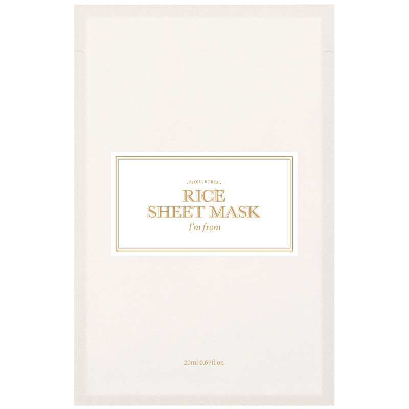 Rice Sheet Mask er formulert med risekstrakt og gjennomtrukket i en melkeaktig essens fra Goami-ris, en koreansk ris rik på kostfiber og kjent for sine hudpleiende egenskaper. Ekstraktet fremstilles gjennom en skånsom prosess ved 90 grader i 60 minutter, som hjelper med å bevare risets naturlige egenskaper og rene duft. Goami-ris bidrar til en mykere, fuktet hud med en klarere og jevnere tone. Masken er inspirert av I’m Froms bestselgende Rice Toner og kombinerer risekstrakt med fuktighetsgivende og mykgjørende ingredienser som glyserin, squalane og panthenol for en silkeaktig følelse. Den myke og lette sheet-masken former seg etter ansiktskonturene som et tynt rispapir og overfører effektivt de næringsrike ingrediensene. Den melkeaktige essensen absorberes skånsomt av huden og etterlater den fuktet og jevn med en frisk glød.