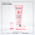 Styrkende fondant til svekket hår, forebygger håravfall som følge av hår som knekker. Denne kremete sammensetningen beskytter håret mot å knekke, samtidig som den etterlater en lett finish. Den styrker fibrene og gjør de mer motstandsdyktige for å redusere risikoen for håravfall som følge av at håret knekker. Balsamen fra Kérastase er beriket med en kombinasjon av Edelweiss Native Cells og ingefærrot, og glatter, styrker og gjør fibrene umiddelbart mykere samtidig som håret får tilført næring uten at det blir tungt. Håret blir jevnt, glansfullt og sterkt.