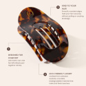 Lenoites Flat Hair Clip er en elegant hårklype laget av miljøvennlig celluloseacetat, et eksklusivt og holdbart materiale som føles lett, sterkt og luksuriøst. Den ergonomiske designen følger hodeformen og gir et sikkert grep hele dagen uten å slite på håret.