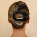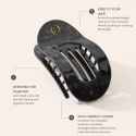 Lenoites Flat Hair Clip er en elegant hårklype laget av miljøvennlig celluloseacetat, et eksklusivt og holdbart materiale som føles lett, sterkt og luksuriøst. Den ergonomiske designen følger hodeformen og gir et sikkert grep hele dagen uten å slite på håret.