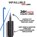 Ramm inn øynene med livlige matte pigmenter med vår Infaillible Grip 24H Matte Liquid Liner. Applikatoren er behagelig å holde i og har en tynn børste som gjør det superenkelt å tegne nøyaktige linjer. Formelen er vannfast og holder i opptil 24 timer.