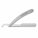 En barberkniv i rustfritt stål med en polert overflate. Med et sagtannet grep og et fastere feste for presisjon. Leveres i 5-pakning med doble blader.