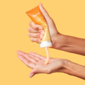 Påfør kremen på fuktet hud og masser den inn med sirkulære bevegelser. Når du bruker produktet, endres fargen fra oransje til hvit, slik at du enkelt kan se om det er jevnt fordelt. La kremen sitte i ca 10 minutter og skyll deretter med vann