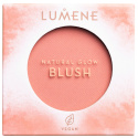 Natural Glow Blush er en vegansk, parfymefri rouge som gir en frisk farge med en naturlig matt finish. Den pigmentrike, silkemyke formelen inneholder lysende nordiske multebær og fuktighetsgivende hyaluronsyre som enkelt kan påføres i flere lag for å bygge opp en mer intens farge om ønskelig. Boksen er laget av FSC®-sertifisert papp (FSC-N003275). Produsert i Finland.