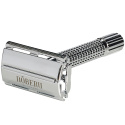 Nõberu of Sweden Sikkerhetshøvel - B43. Dette er vår klassiske sikkerhetshøvel med såkalt sommerfuglåpning. Barberhøvelen er omsorgsfullt tilvirket av markedsledende produsenter i Tyskland. Høvelen har en behagelig vekt og ligger godt i hånden under bruk. Den er lekkert krummet og har potensial til å bli en baderomsfavoritt i mange år fremover. Hver høvel leveres med et barberblad fra Solingen Timor.