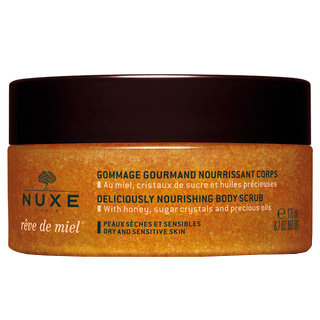 Deliciously Nourishing Body Scrub er en 2 i 1 behandling. En luksuriøs bodyskrubb med honning og sukker som både eksfolierer og nærer huden. Forvandles til en melkebalsam når den masseres inn på våt hud, og etterlater et nærende og beskyttende lag.