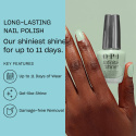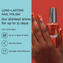Locks like gel, unlocks like lacquer. OPI introduserer Infinite Shines nye banebrytende formel med en forhåndsherdet gelteknologi som gir glans, dekning og langvarig holdbarhet i opptil 11 dager. Den gellignende formelen omslutter neglene for en glatt og jevn dekning uten striper eller bobler, og fjernes enkelt med aceton for rask og skadefri fjerning. Den er så bra at man tror at det er gel. Infinite Shine er alt du elsker med gel og alt du elsker med lakk