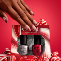 Med ekstra OPIcing gir dette konseptet en søt vri på julestemningen. Klassiske sukkertøy er blitt til neglelakk og gir neglene dine lag på lag med farger som er så gode at de er verdt å unne seg. Bli hekta på det røde og hvite i peppermynte-sukkertøystenger. Smak på din favorittlakris eller nyt rik, myk pepperkake. Det er en opplevelse for sansene (men ikke for munnen)!