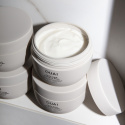 Mandel-, makademia- og olivenolje, shea- og illipesmør samt hydrolisert keratin gjenvinner hårets fuktighet, reparerer skader og gir glans til tykt hår.