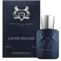 Layton Exclusif er en Eau de Parfum for menn. Den har en varm, orientalsk og treaktig duft. Fremtredende hint av mandarin, bergamot, mandler, i tilegg til vannaktige hint. Et hjerte av åkande, geranium, gardenia og roser. I bunn er det hint av egetre, rav, kaffe, vanilje, sandeltre, patchouliblader, guaiactre, agartre og rosa pepper. Glem ale regler og grenser. Parfums De Marly Layton Exclusif unix Eau De Parfum er perfekt til alle som tør å skille seg ut i mengden.