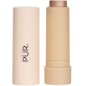 Vri opp stiftet og påfør på utvalgte områder der du ønsker ekstra glans, som kinnben, brynben og nesetippen. Arbeid produktet inn med fingertuppene eller en luftig børste for en myk finish. Bygg opp om ønskelig