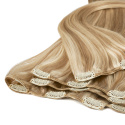 Clip-on set er et komplett sett med hårdeler som kan brukes for en midlertidig hårforlengelse eller for ekstra volum med et naturlig resultat. Fest de ulike delene enkelt med de fastsydde klipsene. Clip-on sets myke trense følger hodets form for maksimal komfort. Det fyldige håret er ekte og kan enkelt styles sammen med ditt eget hår. Miks et sett på 7 deler med et sett på 3 deler for maksimalt volum.