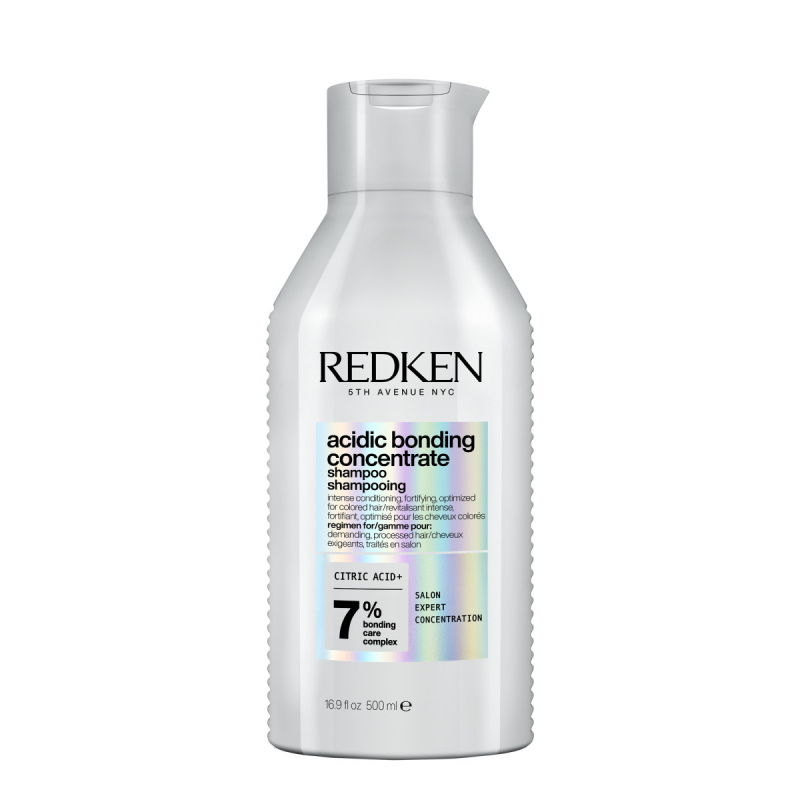 Bekjemp et års synlige skader i ett enkelt bruk* med de fire trinnene i Redken Acidic Bonding Concentrate-regimet. Profesjonell formel! Redken Acidic Bonding Concentrate Shampoo er Redkens mest konsentrerte alt-i-ett-formel for styrkende reparasjon av alle typer skadet hår. Denne eksklusive sjampoen gir ultimat styrke, reparerer og beskytter hårfargen mot falming. Med 7 % Bonding Care Complex og alfa-hydroksysyre, sitronsyre, styrker Acidic Bonding Concentrate Shampoo svake bindinger og forbedrer hårets spenstighet. Denne pH-balanserende sjampoen er spesielt formulert med en lav pH-verdi for å motvirke de negative effektene av hårfarging, varmestyling og til og med vann. Resultatet? Hår som ser sunt ut og føles sunt!