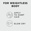 Produktet gir naturlig volum uten å tynge. Thickefy Foam gir lett og oppløftende struktur. Vektløst volum som holder håret på plass.