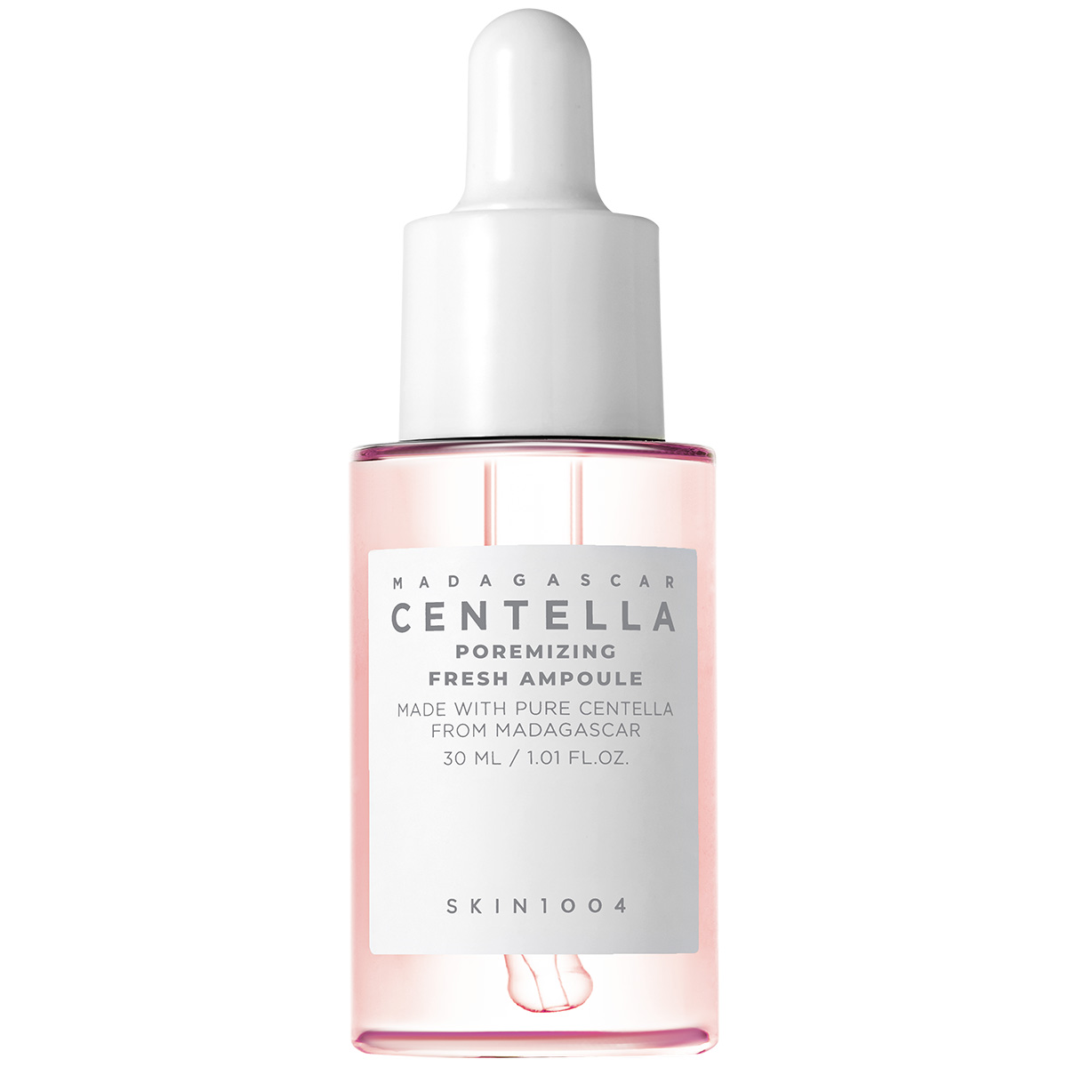 Madagascar Centella Poremizing Fresh Ampoule er en ikke-komedogen ampull med lett og forfriskende konsistens – spesielt utviklet for å redusere synligheten av porer og styrke hudens elastisitet. Formelen inneholder Centella Asiatica-ekstrakt fra Madagaskar, en signaturingrediens kjent for sine beroligende, fuktighetsgivende og barriere-styrkende egenskaper. Rosa Himalayasalt bidrar til å fjerne urenheter og balansere huden, mens et 9-peptidkompleks støtter hudens elastisitet og fasthet, noe som hjelper med å motvirke forstørrede porer. Produktet har gjennomgått kliniske tester med målbare resultater: redusert porevolum, porestørrelse, porenes dybde og total overflate. Den vannaktige formelen absorberes raskt og gir intens fuktighet med en frisk, ikke-klebete finish – uten å tette porene.