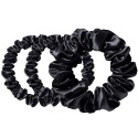 Inneholder: 2 x svart mellomstor scrunchie i ren silke, 1 x svart stor scrunchie i ren silke.