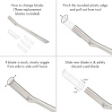 Tweezerman Facial Razor Replacement Blades inkluderer også 4 refill-barberblader av høy kvalitet, som passer til verktøyet Tweezerman Facial Razor (som selges separat). Med disse barberbladene fjerner du uønskede hår og dun i ansiktet på en enkle og trygg måte, og samtidig får ansiktet en skånsom eksfoliering. De skarpe barberbladene er laget av rustfritt stål; et hygienisk og slitesterkt materiale som er lett å rengjøre.