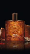 Versace Eros Najim er en kraftfull og forførende duft for den moderne mannen – karismatisk, magnetisk og med en mystisk appell. «Najim» betyr stjerne på arabisk, og duften er nettopp det: en ny stjerne på Versaces dufthimmel, inspirert av det gylne skumringslyset over sanddynene i Midtøsten. Duften åpner med en eksplosjon av italiensk gul mandarin som møter safran og kardemomme – en livlig introduksjon med varme og krydret energi. I hjertet løftes oud og sedertre av myk karamell, noe som skaper en elegant balanse mellom intensitet og mykhet. Basen er dyp og jordaktig med patchouli, vetiver og tonkabønne, hvor røkelse tilfører et fengslende, nesten hypnotisk preg som henger igjen i luften.