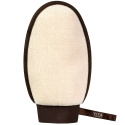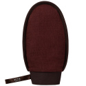 Før du fjerner rester av selvbruningsproduktet, bruk den mørke siden av votten for dypere rens. Dette gjøres med sirkulære bevegelser og et lett trykk mot huden.