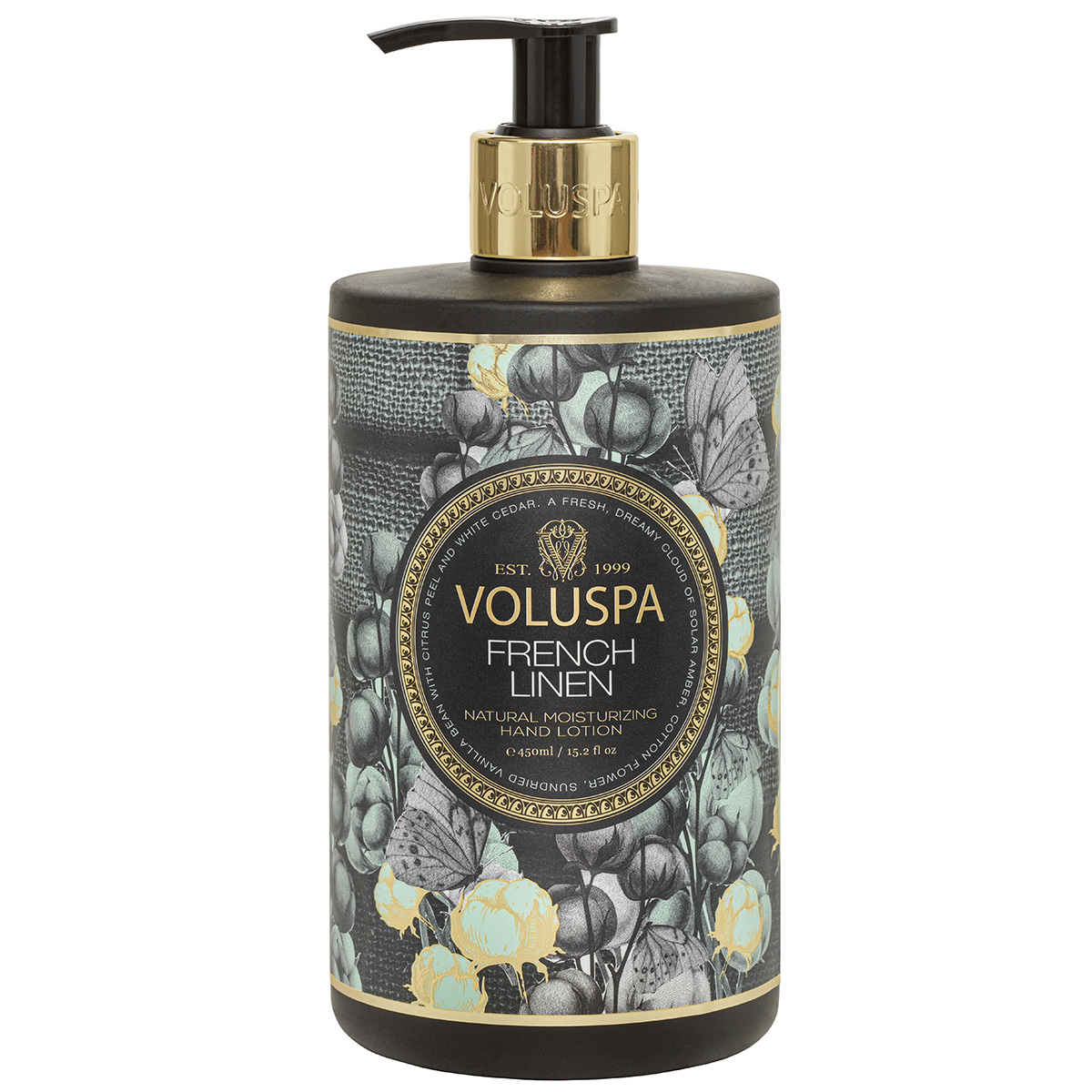 Håndkrem med en frisk duftkombinasjon av bomullsblomst, rav, soltørket vaniljebønne, sitrusskall og hvit sedertre. 450 ml