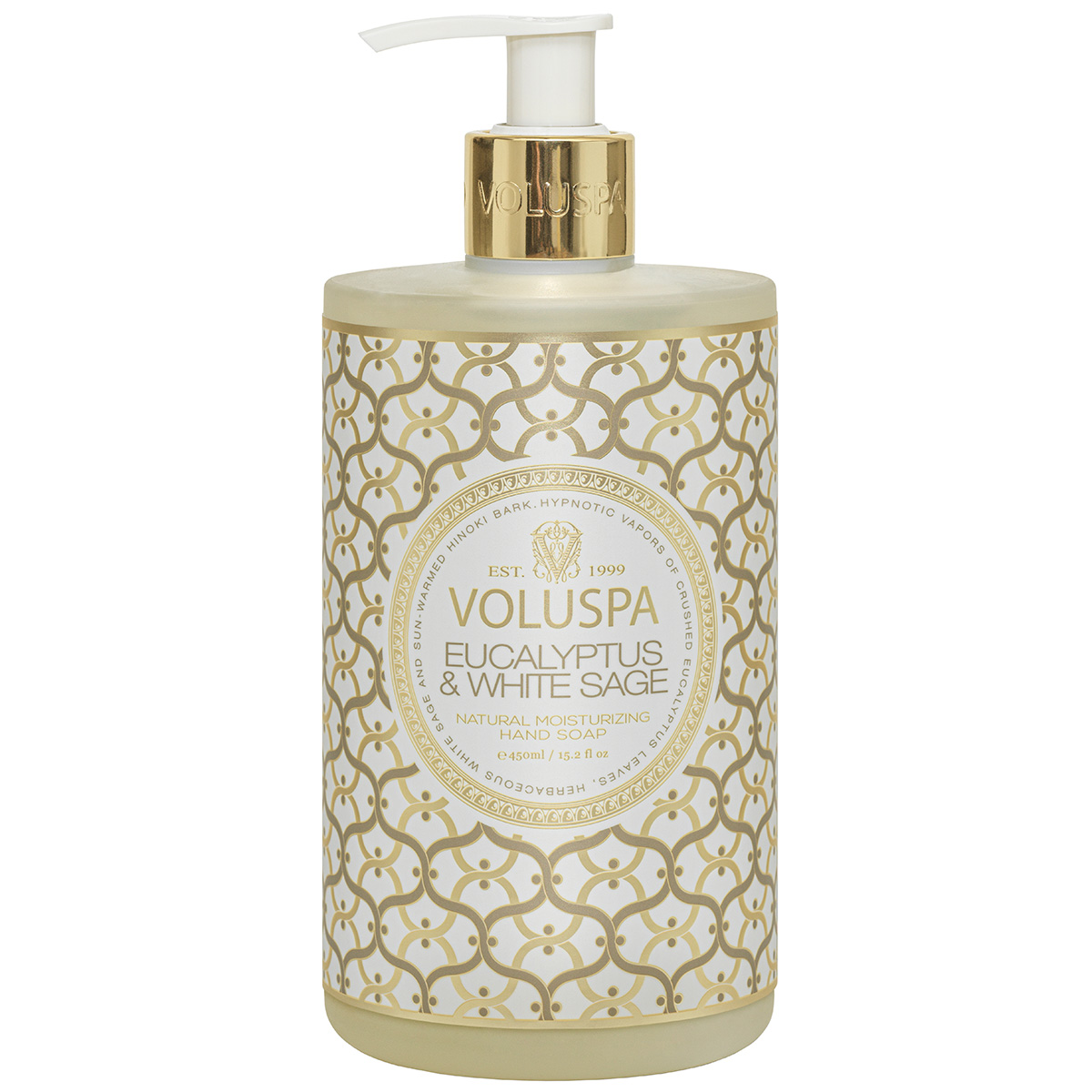 Håndsåpe med duft av urtesalvie, eukalyptus, kardemomme og solvarm hinokibark. 450 ml